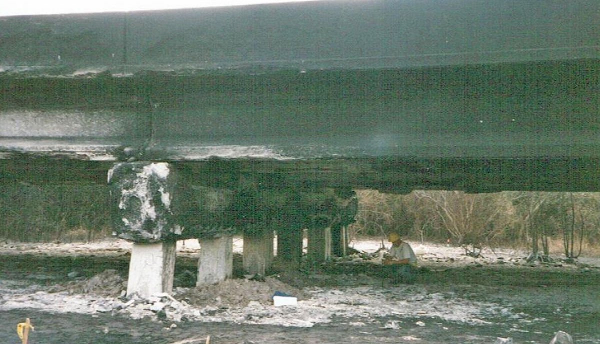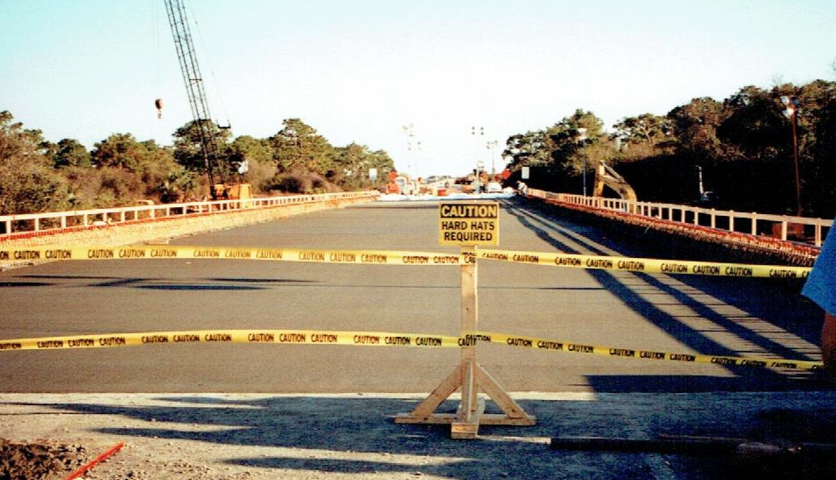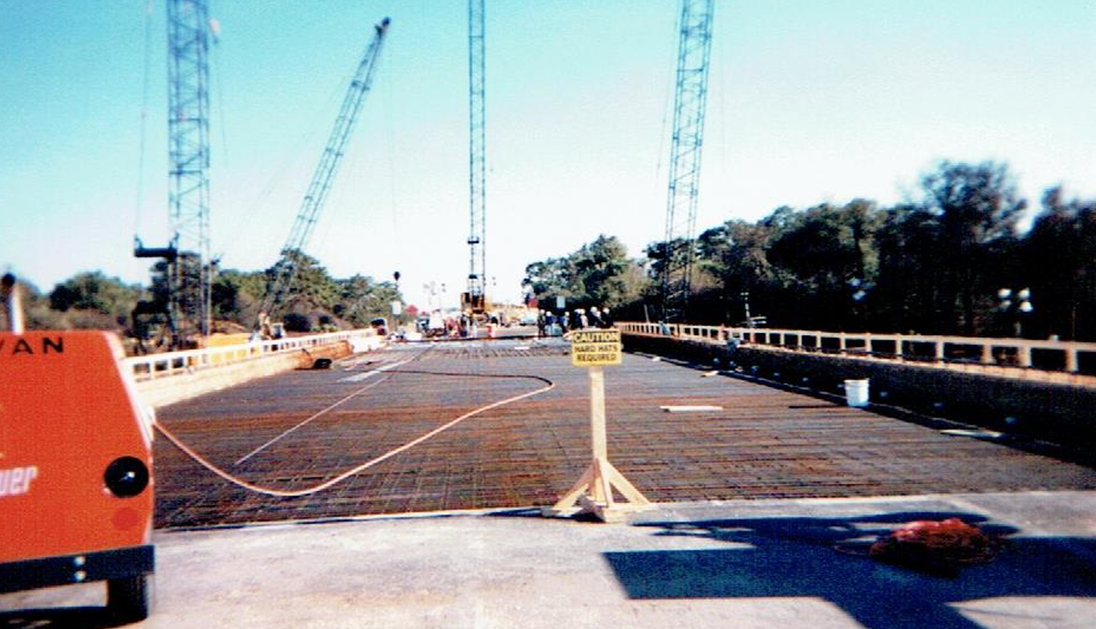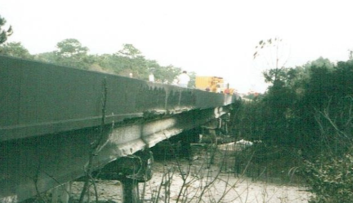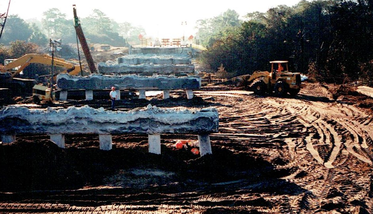 In 1996, an accident took place on I-75 Southbound in Sarasota County, closing the Interstate. A tanker truck full of diesel fuel lost control and overturned, spilling its’ load which ignited under the Salt Creek Crossing. The Southbound traffic had to be rerouted through downtown Venice, creating a backup several miles long. FDOT officials contacted Jim Leware, an agreement was reached and Leware Construction Company mobilized its resources based on a hand shake. Eighteen days later the bridge was reopened. All of the Bridge’s 5 span 330’ superstructure had to be removed and replaced including the AASHTO Type III Beams. Three intermediate pile caps along with their piling (to a depth of two feet below existing ground) also were required to be removed and replaced. The barrier wall was recast and painted, sod was laid, landscaping, and traffic striping. By all accounts it was a remarkable achievement involving tremendous effort and cooperation by all parties to enable so much to be accomplished in so little time.