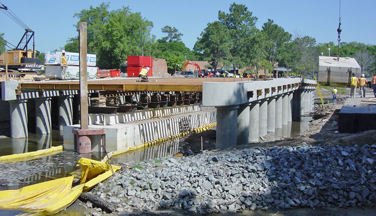 Located just off campus from the University of Florida, this bridge replacement project entailed the removal of an antiquated two lane bridge along with an accompanying pedestrian bridge. These two structures were replaced with a single Bridge, 97’2” wide and 120’ long, consisting of three 21” thick, cast in place spans. The center span incorporated extended observation platforms complete with seating and architectural finishes.