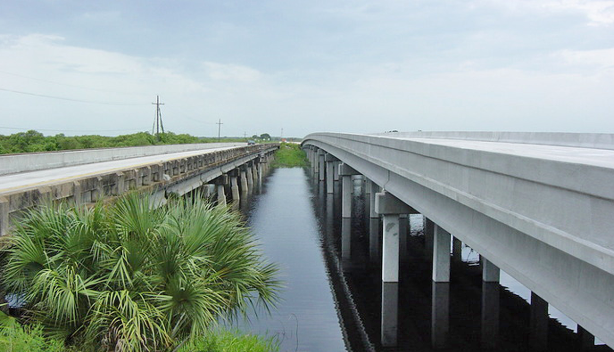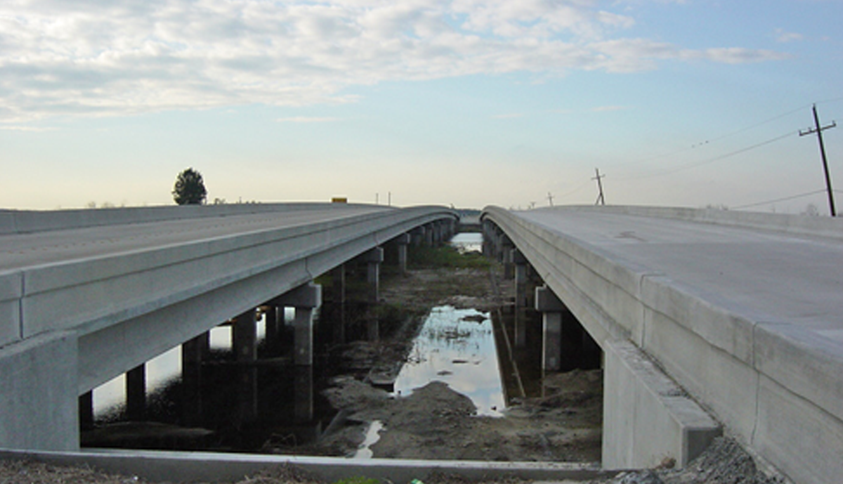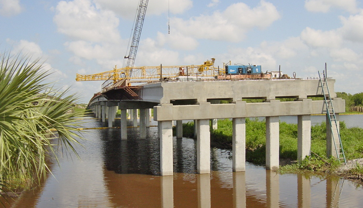 As part of the Emergency Evacuation Route for the east coast of Central Florida, 4.67 miles of US 192 were improved across the St. John River floodplains. Existing two lane crossings were replaced with twin 13 span structures 1,066’ in length over the River, a 263’ five span bridge over the Relief canal and a 66’ span over Sawgrass Creek. Concrete sheet pile walls at each abutment in conjunction with the lengthened bridge provided an additional 300’ of floodplain relief over the pre-existing condition.